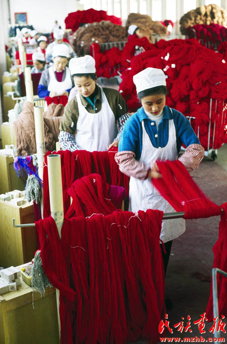 20世紀(jì)90年代初期,一些經(jīng)濟(jì)學(xué)家把戰(zhàn)略眼光投向資源豐厚的西部地區(qū),以促進(jìn)中西部省區(qū)經(jīng)濟(jì)協(xié)作為目的的隴海蘭新經(jīng)濟(jì)帶悄然成型,并輻射至西亞和歐洲。圖為跨入全國800家最大工業(yè)企業(yè)行列的甘肅省天水市甘肅絨線廠。《民族畫報(bào)》1994年第4期