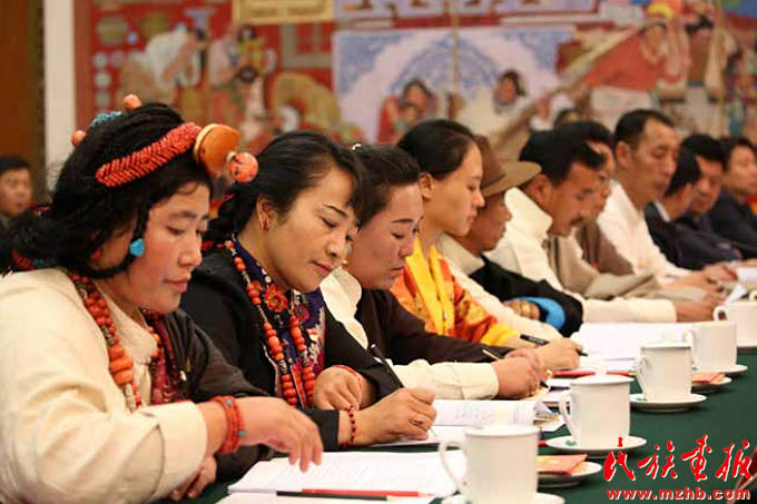 2017年10月18日,在中國共產(chǎn)黨第十九次全國代表大會(huì)上,習(xí)近平鄭重宣示:“經(jīng)過長期努力,中國特色社會(huì)主義進(jìn)入了新時(shí)代,這是我國發(fā)展新的歷史方位。”十九大報(bào)告中,習(xí)近平用五句話深刻揭示了新時(shí)代的內(nèi)涵,指出這個(gè)新時(shí)代,是承前啟后、繼往開來、在新的歷史條件下繼續(xù)奪取中國特色社會(huì)主義偉大勝利的時(shí)代,是決勝全面建成小康社會(huì)、進(jìn)而全面建設(shè)社會(huì)主義現(xiàn)代化強(qiáng)國的時(shí)代,是全國各族人民團(tuán)結(jié)奮斗、不斷創(chuàng)造美好生活、逐步實(shí)現(xiàn)全體人民共同富裕的時(shí)代,是全體中華兒女勠力同心、奮力實(shí)現(xiàn)中華民族偉大復(fù)興中國夢的時(shí)代,是我國日益走近世界舞臺(tái)中央、不斷為人類作出更大貢獻(xiàn)的時(shí)代。圖為席黨的十九大的西藏自治區(qū)代表團(tuán)代表在討論十九大報(bào)告?!睹褡瀹媹?bào)》2017年第11期