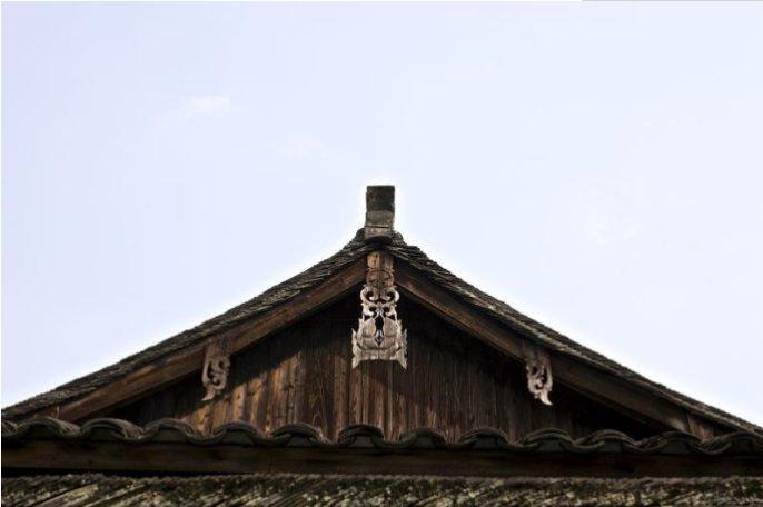 隨著時(shí)間流轉(zhuǎn),懸魚在匠人時(shí)代里閃轉(zhuǎn)騰挪,歷經(jīng)了由簡(jiǎn)到繁的造型征途,也從功能構(gòu)件升華為裝飾構(gòu)件。同舊時(shí)的其他建筑構(gòu)件一樣,懸魚在實(shí)際功用與藝術(shù)創(chuàng)造間轉(zhuǎn)徙。因此,它最先考慮了對(duì)木結(jié)構(gòu)的保護(hù),之后才生出裝飾作用等枝蔓。懸魚覆蓋在博風(fēng)板合角處的罅隙位置,不僅保護(hù)了合角處不受雨雪侵襲,同時(shí)可以美化接縫。懸掛后,也從結(jié)構(gòu)上起到了穩(wěn)定博風(fēng)板的作用,同時(shí)還庇護(hù)了檁條端頭,有效地防止了木制建筑過早斑駁。時(shí)至今日,懸魚已然成為傳統(tǒng)建筑中結(jié)構(gòu)性與裝飾性完美融合的一種構(gòu)件,更是祖先智慧的一種體現(xiàn)。