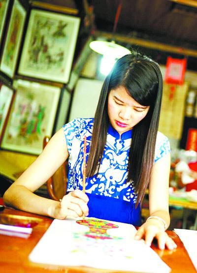 復業(yè)后,年畫鋪的生意和馮炳棠的生活一樣平平淡淡。直到2014年,一位活潑開朗的姑娘的到來,百年老鋪煥發(fā)了新的活力。這位姑娘正是劉鐘萍。