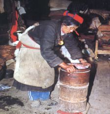 門(mén)巴族婦女在打酥油