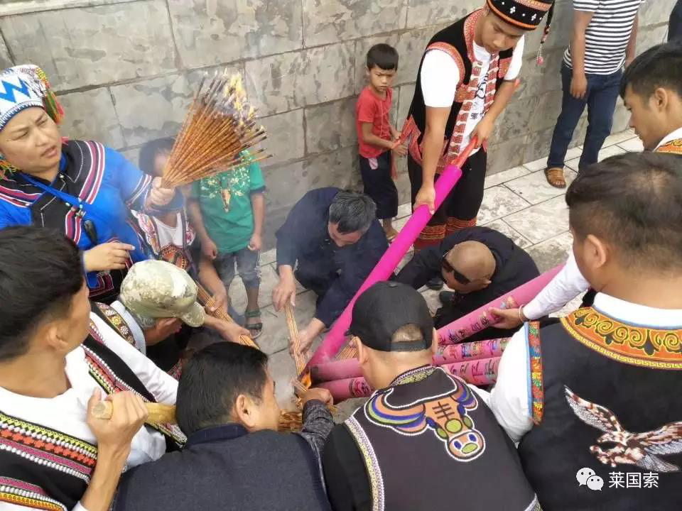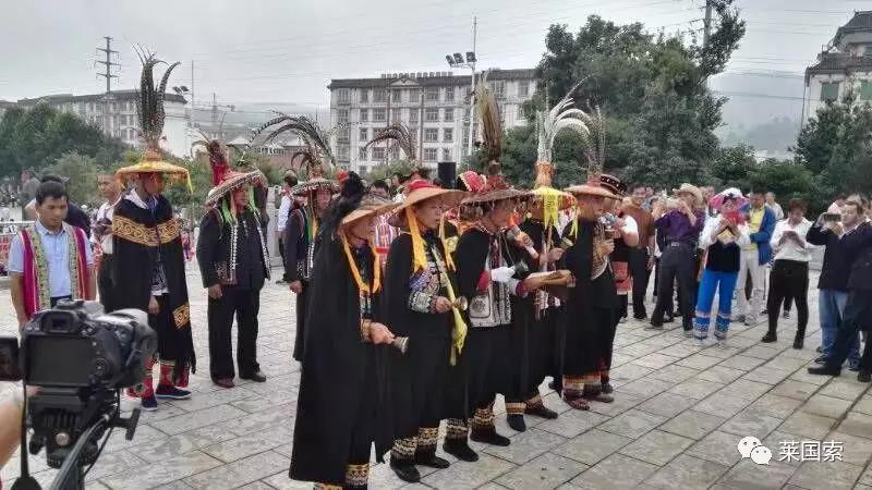 祭祖大典隆重、肅敬、莊嚴。儀式: 1、吹奏長號樂、鳴禮炮,敬告天地東西南北中五方神抵;2、奏樂(長號、噴吶),請彝族畢摩上香;3、奏樂(長號、噴種),敬貢三牲,果品,圣水,豬頭,雞;4、請彝族畢摩撒五谷,念誦《散五谷詞》;5、彝族畢摩向祖先阿普駕幕行跪拜禮,恭誦《祭祖祈福經(jīng)》;6、請各地同胞代表恭誦《祭文》;7、請各位領導、各位來賓、各位朋友全體起立!向彝族祖先阿普篤幕及六祖行叩首禮:一鞠躬!再鞠躬!三鞠躬!禮畢!8、奏樂(長號、噴吶),恭請貴賓敬獻高香。
