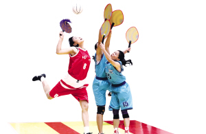 加速沖刺、急停、轉(zhuǎn)身、變向變速、突破過人,銀球穿越“蛤蚌”阻擋,被兜入“抄網(wǎng)”,看似是籃球比賽,然而卻只是形似。這正是全國少數(shù)民族傳統(tǒng)體育運動會競賽項目——珍珠球。