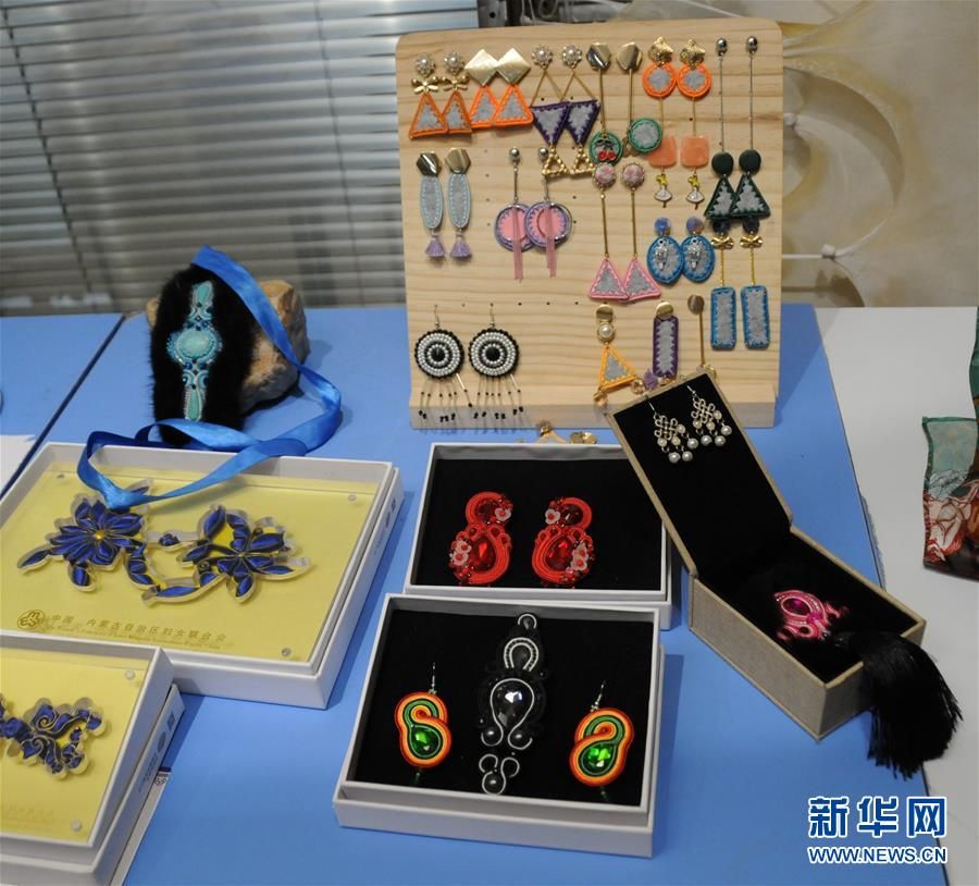參與“布絲瑰行動計劃”的婦女制作的十二生肖主題盤扣。(新華社記者勿日汗 攝影)