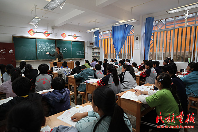 “對(duì)于一個(gè)在北平住慣的人,像我,冬天要是不刮大風(fēng),便覺(jué)得是奇跡;濟(jì)南的冬天是沒(méi)有風(fēng)聲的?!弊哌M(jìn)學(xué)校初中部,朗朗書聲立即傳入耳中,七年級(jí)一班學(xué)生正在老師的帶領(lǐng)下大聲朗讀我國(guó)著名作家、劇作家、小說(shuō)家老舍創(chuàng)作的散文《濟(jì)南的冬天》。獨(dú)龍江九年一貫制學(xué)校校長(zhǎng)楊四洋對(duì)記者說(shuō):“習(xí)近平總書記曾深刻指出:少數(shù)民族學(xué)好國(guó)家通用語(yǔ)言,對(duì)就業(yè)、接受現(xiàn)代科學(xué)文化知識(shí)、融入社會(huì)都有利。所以我們學(xué)校從成立之初就開(kāi)始推行國(guó)家通用語(yǔ)言文字教育,如今每一個(gè)在校學(xué)生都能講出一口流利的普通話。獨(dú)龍族聚居地地處深山峽谷,自然環(huán)境惡劣。學(xué)好國(guó)家通用語(yǔ)言文字對(duì)我們的孩子尤為重要,這樣才能更好地建立與外界溝通的橋梁?!?/p>