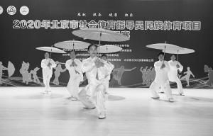 2020年北京市社會(huì)體育指導(dǎo)員民族體育項(xiàng)目交流展示賽日前在北京市民族文化交流中心舉辦,來(lái)自全市16個(gè)區(qū)的40支代表隊(duì)交流展示了民族健身操、舞龍、太極拳等項(xiàng)目。