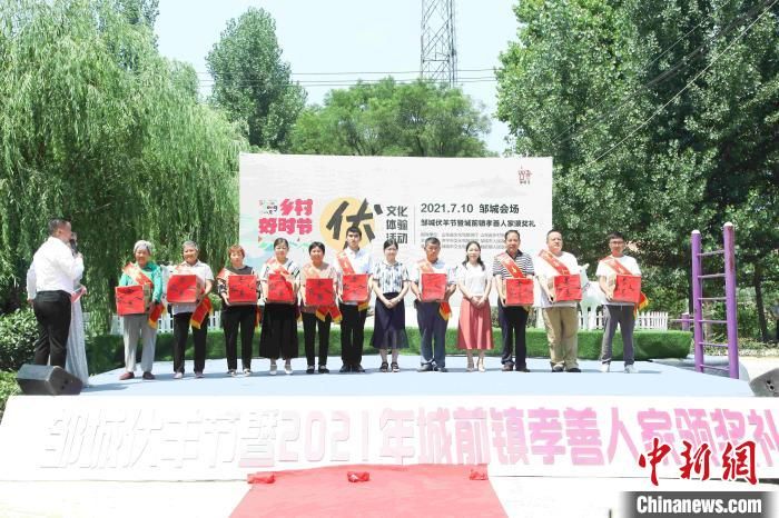 記者10日在現(xiàn)場看到,啟動儀式在傳統(tǒng)舞蹈《祈伏》中拉開序幕,鄒城文化學(xué)者從“善”字字形發(fā)展變化入手,現(xiàn)場說文解字,解讀伏文化與孝善文化之間的文化淵源?!靶⑸蒲驕纭睂⒎蚬?jié)推向高潮,當(dāng)?shù)卮迩f免費請“孝善人家”代表等“喝伏羊”。