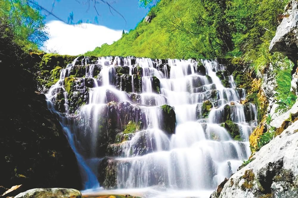 盛夏,從被金黃油菜花和綠油油的麥苗環(huán)繞的村莊,行駛到奇絕雋秀的高山峽谷,沿途群山涌翠、花木繁茂,古木參天、芳香馥郁、鳥語花香,美景讓人賞心悅目;野兔、馬鹿、馬雞等野生動物出沒于河畔叢林,讓人感到野趣十足;達坂紅葉、十二生肖盤、神龍?zhí)镀俨?、圣母天池、藥水泉瀑布,讓人流連忘返;雪山、峽谷、奇峰、石林、角巖、懸崖、峭壁等地貌群,讓人心醉神迷,會有“車在路上行、人在畫中游”的驚艷,也會被“樹下有鮮花、花中有飛蝶,山巔云霧繞、溪澗有飛瀑”的大美所征服。