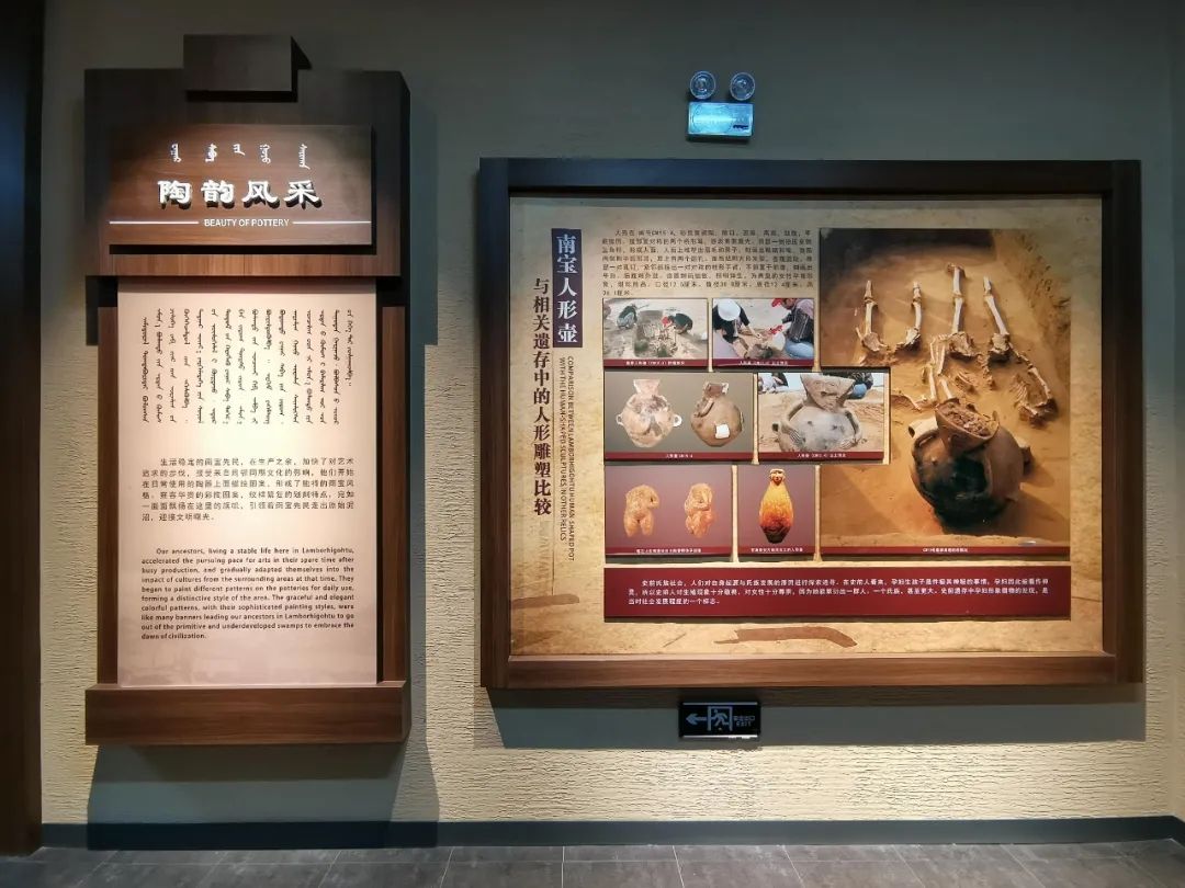 陶韻風(fēng)采;生活穩(wěn)定的南寶先民,在生產(chǎn)之余,加快了對(duì)藝術(shù)追求的步伐,接受來(lái)自周鄰?fù)谖幕挠绊?,他們開(kāi)始在日常使用的陶器上面描繪圖案,形成了獨(dú)特的南寶風(fēng)格。雍容華貴的彩陶?qǐng)D案,紋樣繁復(fù)的劃刻特點(diǎn),宛如一面面飄揚(yáng)在這里的旗幟,引領(lǐng)著南寶先民走出原始泥沼,迎接文明曙光。
