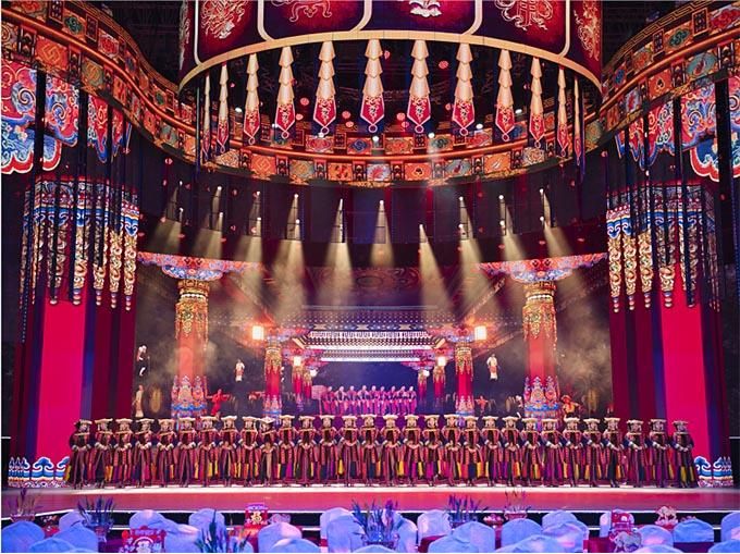在舞美上,晚會傾力打造中華文化概念,突出鑄牢中華民族共同體意識,建構(gòu)熱烈祥和的觀演環(huán)境、身臨其境的現(xiàn)場體驗(yàn)、自然流暢的互動場景,以更炫麗、更時尚、更具生命力的節(jié)目內(nèi)容和形式,為觀眾提供技術(shù)與藝術(shù)完美結(jié)合的視聽盛宴。主創(chuàng)人員別具匠心地把舞臺設(shè)計成一個具有民族特色的大客廳,寓意各族兄弟姐妹溫暖團(tuán)聚,營造既有民族特色又有時代氣息的視覺空間。