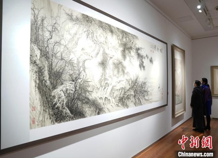 在展覽上,為慶祝中國藝術(shù)研究院建院70周年,田黎明和許俊,??苏\、周石峰、任清和曾三凱,劉萬鳴和劉彥水,趙建成、崔進和劉少寧分別合作的《新綠》《千巖霞映》《棲禽圖》《我見青山多嫵媚》4幅丈二尺幅的中國畫同時亮相。