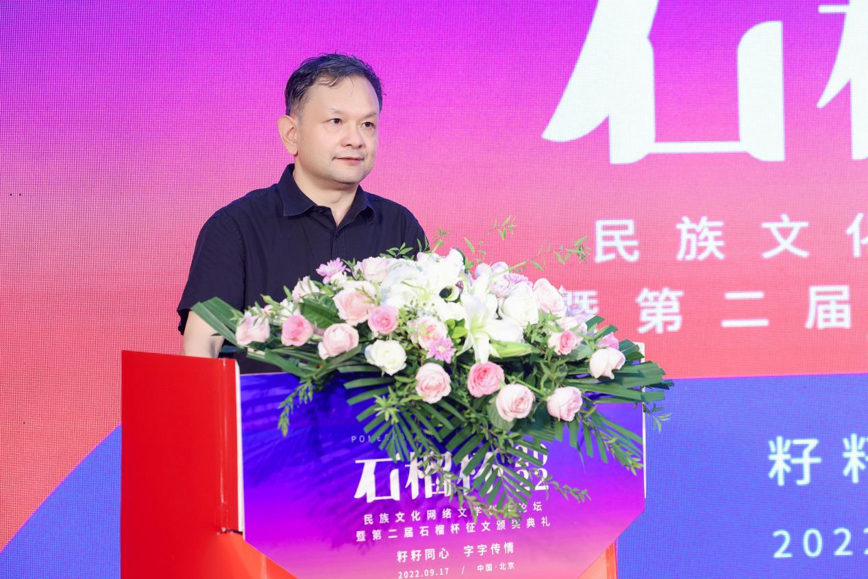 2022年9月17日,民族文化網(wǎng)絡(luò)文學(xué)創(chuàng)作論壇暨第二屆石榴杯征文頒獎活動在民族文化宮舉行。本次活動得到了國家民委所屬中國少數(shù)民族文化藝術(shù)促進會和中國紀實文學(xué)研究會的指導(dǎo)與支持,由閱文集團、北京天成嘉華文化傳媒主辦,天成達星國際傳媒承辦。