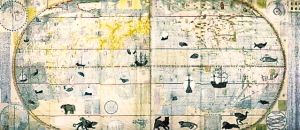 李之藻年輕時(shí)就對實(shí)學(xué)頗感興趣,曾自行繪制過明朝兩京十三省的地圖。見到利瑪竇用西法繪制的世界地圖后,李之藻敏感地意識到,這個(gè)地圖的繪制方法與中國傳統(tǒng)的“計(jì)里畫方”方法不同,是“取天文以準(zhǔn)地度”,用經(jīng)緯度確定地理方位。對利瑪竇的學(xué)問一見而傾心的李之藻,每天都要到利瑪竇的公寓學(xué)習(xí)地理、天文知識,每次都要花上四五個(gè)小時(shí)。1602年,李之藻與利瑪竇結(jié)合中西繪圖技術(shù),合作繪制了一版世界地圖《坤輿萬國全圖》,這幅地圖改變了當(dāng)時(shí)通行的將歐洲居于地圖中央的西方繪圖格局,把子午線向西移動(dòng)170度,從而使東亞的中國居于地圖的中央,并且全圖標(biāo)上了詳細(xì)的漢字標(biāo)識,這是中國最早的世界地圖。