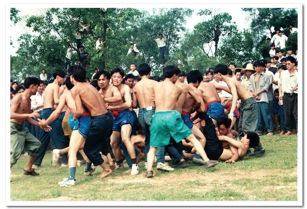 待賀節(jié)隊(duì)回到主會(huì)場,花炮節(jié)正式開始,首先是舞獅表演,接著蘆笙、卡羅舞表演,斗馬、斗鳥以及賽馬等活動(dòng)各自展開。這些活動(dòng)告一段落后,最精彩的節(jié)目——搶花炮開始了,人們像潮水般涌向主席臺(tái)前,圍成一個(gè)幾十個(gè)平方米的空地作搶花炮場地。搶花炮分一、二、三等,搶三次,得勝者,抬著漂亮的花炮頭及獎(jiǎng)品興高采烈地回村了。