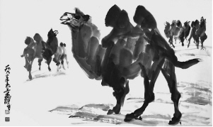 駝隊(duì)背負(fù)著生活的荷載,承載著最原始的物流,古時(shí)候的絲綢之路也是靠駝背馱出來的。浩瀚沙漠,赤地千里,群駝?chuàng)P起高傲的頭,目光炯炯地對抗西北的烈風(fēng)。人們贊美駱駝,并不是因?yàn)樗鼈グ缎劢〉纳碜?,而是它對惡劣環(huán)境那種淡然的態(tài)度,似乎它們與上蒼有個(gè)剛直的約定,不懼嚴(yán)寒酷暑,不懼路途遙遠(yuǎn),敢與沙塵暴面對面抗衡。它們在行走中鑄就生命的品格,天地之間,駝?dòng)∏壅?,一路向前…?/p>