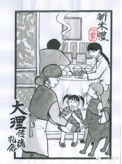 孩子們眼巴巴地看著阿奶阿媽在供桌前擺上已經(jīng)煮好的雞、魚和豬肉,呈上熱騰騰的新米飯,還敬茶、敬酒,跪拜禱告結(jié)束后,阿媽又從甑子里舀出一碗新米飯,拿到院子給大黑狗吃,說大黑看家護(hù)院勞苦功高。