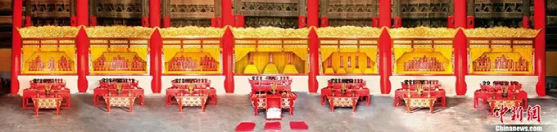 歷代帝王廟景德崇圣殿內(nèi)7開(kāi)間龕位與188位入祀帝王牌位。(中新社發(fā) 許偉 供圖)