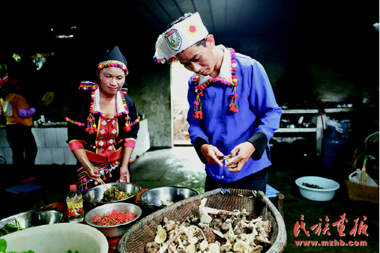 趙臘退辦起了農(nóng)家樂,與妻子一起為客人準(zhǔn)備飯菜。