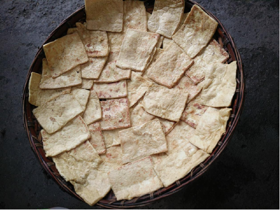鍋烙豆腐:沿山鍋烙豆腐是精選上好的黃豆作原料,通過純手工制作成豆腐,切成方塊,用草木灰撒在上面,自然發(fā)酵兩天,再用清水洗凈,切成小塊狀,放入鐵鍋烙黃,沿山鎮(zhèn)以丁家制作的鍋烙豆腐最為有名。到沿山旅游玩耍的客人都會(huì)品嘗這一美食,口感外酥里嫩,即可煮食也可干炒或涼拌。
