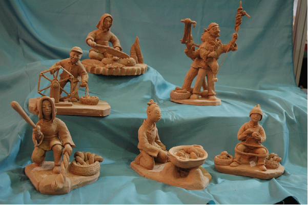 泥塑藝術(shù)是我國一種古老常見的民間藝術(shù)。它以泥土為原料,以手工捏制成形,或素或彩,以人物、動物為主。不同的民間風(fēng)俗,流傳著很多動人的傳說故事,這些構(gòu)成了泥塑藝術(shù)的精神內(nèi)核。民間泥塑的用途主要有祈子延壽、納福招財、驅(qū)邪避災(zāi)和裝飾擺設(shè)等。泥塑成本低,費(fèi)工少,是老百姓喜聞樂見的藝術(shù)表現(xiàn)形式,它往往和節(jié)令、禮儀、風(fēng)俗聯(lián)系在一起,反映的是當(dāng)?shù)剞r(nóng)村人們?nèi)粘I畹牟煌瑘鼍埃宋镨蜩蛉缟?,場景鮮活生動。