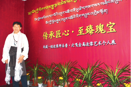 2016年9月2日,以“傳承匠心·至臻瑰寶”為主題的朵普·次嘎金屬造像藝術(shù)個人展在西藏博物館開幕。 圖為朵普·次嘎的紀(jì)念照片。