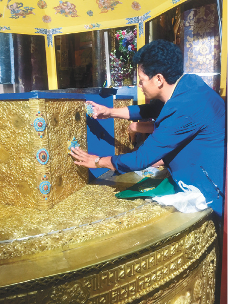 “大昭寺壇城制作過程中,我每時每刻都要保持精力集中,要小心翼翼、精精細(xì)細(xì)地完成每道工序、每個細(xì)節(jié),才可能讓這件作品成為可以留傳久遠(yuǎn)的精品?!贝胃抡f,作為祖輩都在傳承佛像金屬鍛鑄造技藝的工藝匠人來說,這樣的機(jī)會是可遇而不可求的。