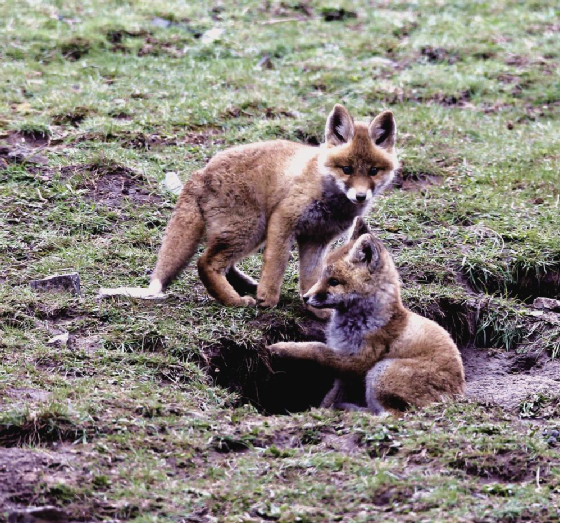 藍(lán)天白云,微風(fēng)輕漾;草地碧綠,鳥語(yǔ)花香。大自然的美景圖正在小赤狐的家園四周徐徐展開。在膽大的小赤狐的叫喚聲里,躲在洞內(nèi)的另外兩只小赤狐也壯著膽子探出頭來。不一會(huì)兒,它們習(xí)慣了周圍的環(huán)境,三只小赤狐在離洞口5米遠(yuǎn)的范圍內(nèi)嬉戲玩耍著。它們時(shí)而跳躍,時(shí)而奔跑,展現(xiàn)出本能的捕獵動(dòng)作。稍大一點(diǎn)的小赤狐騎在小一點(diǎn)赤狐的背上嬉戲玩耍,小赤狐也不示弱,奮力反擊,猶如兒童打鬧,其樂無(wú)窮。那烏黑溜圓的眼睛彎了又彎,毛茸茸的尾巴高高地翹起,身體嬌小,惹人喜愛,讓人看了會(huì)產(chǎn)生想上去抱一抱、摸一摸小赤狐身軀的念頭。