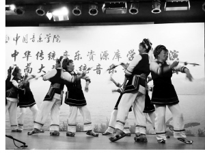 開場(chǎng)舞蹈——喜悅霸王鞭。 12月5日晚,由中國(guó)音樂學(xué)院圖書館策劃、組織的“中華傳統(tǒng)音樂資源庫(kù)學(xué)術(shù)...