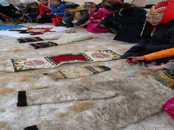 幾年前,為保護和傳承非物質文化,新疆和靜縣巴音布魯克總場舉行了以蒙古族“拜年文化(過年)”為主題的非物質文化展示會。在展示會上,牧民們展示了“拜年文化(過年)”的全過程及有關禮俗。