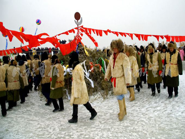 “祭湖”儀式的場(chǎng)面非常壯觀,并帶有幾分神秘的色彩。按照歷代沿襲下來(lái)的習(xí)俗,查干湖漁獵必須由當(dāng)?shù)氐?高望重的“魚(yú)把頭”主持儀式,舉行祭祀湖神,喚醒冬網(wǎng),祭拜天父地母,保佑萬(wàn)物生靈永續(xù)繁衍,百姓生活幸福安康。在冰面上,擺放糖塊、炒米、水果、奶干等供品,點(diǎn)燃香火、炭火鍋,進(jìn)行誦經(jīng)祝辭,祝愿漁獵平平安安,多出 魚(yú)出好魚(yú)。