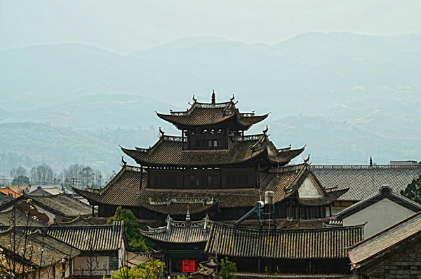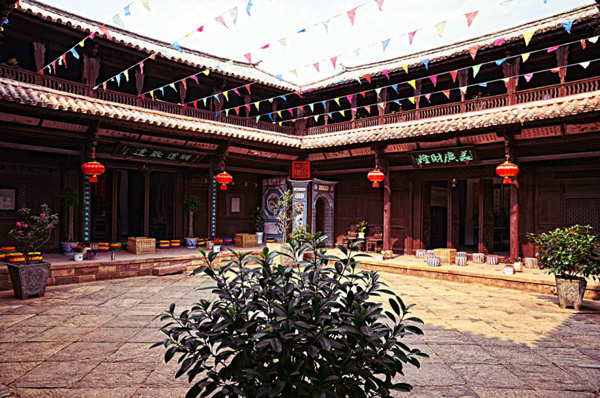 雖然經(jīng)過(guò)歲月侵蝕,但院落的每一個(gè)角落,無(wú)論是精心裝飾的門(mén)楣還是匠心獨(dú)具的花窗,盡管經(jīng)過(guò)了多少年的風(fēng)雨,依然令人感到當(dāng)年的氣魄和獨(dú)有的魅力。在馬如驥大院的二樓,那藻井的彩繪今天依然清晰美麗,有彩繪《三文筆》、《阿文學(xué)?!?、《雞足山莊嚴(yán)塔》、《上海街景》。特別是彩繪《上海街景》,被專家視為不可多得的珍貴資料,它不僅惟妙惟肖的再現(xiàn)了當(dāng)年十里洋場(chǎng)上海灘的風(fēng)華,還體現(xiàn)了馬幫商人的開(kāi)放胸襟和開(kāi)闊眼界,體現(xiàn)了對(duì)現(xiàn)代化生活的向往和對(duì)未來(lái)的憧憬。