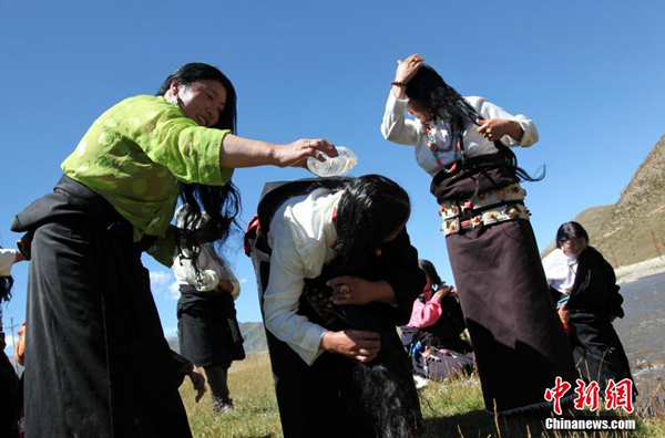 每年的夏末秋初,藏族同胞迎來一年一度的“沐浴節(jié)”。“沐浴節(jié)”,藏語稱為“嘎瑪日吉”,為期7天。這項(xiàng)古老習(xí)俗已經(jīng)延續(xù)了800多年。西藏流傳民謠,“待到棄山星升起,清凈溫暖好沐浴。”也就是說,在“棄山星(金星)””照亮雪域高原的七天里,藏族民眾在星光照耀過的水流中沐浴,可祛除身體病痛、心理雜念,全年健康。