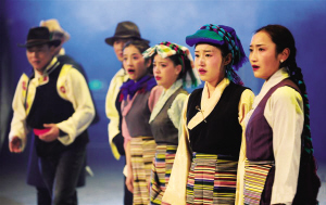 西藏自治區(qū)藏劇團(tuán)演員索朗旺久說:“這部戲中,我們所有的動(dòng)作都取自傳統(tǒng)藏戲,唱腔也同樣忠于傳統(tǒng)。這樣的表演,能很好地表現(xiàn)劇中人物的情感?!?/p>