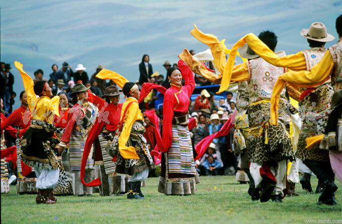 西藏藏族的傳統(tǒng)節(jié)日?!把╊D”漢語意為“奶酪宴會”或“酸奶節(jié)”,近幾十年來又稱其為“藏戲節(jié)”。
