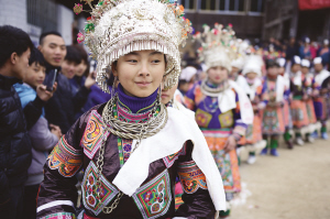 圖為當地苗族姑娘盛裝參加“跳月”活動。