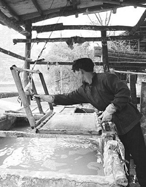 有關(guān)博物館專家研究發(fā)現(xiàn),石橋古法造紙工藝流程與明朝宋應(yīng)星著《天工開物》記載的圖解基本一致,因而認(rèn)定是漢代到唐代這一時(shí)期的造紙工藝,距今已有一千四五百年的歷史。