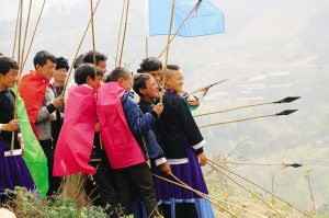 儀式當天,各家各戶的父母給自家的孩子穿上新裝;孩子們則削木為刀,編草為穗,插玉米芯做矛頭,剝玉米皮當纓槍,用竹籃背著用麻籽和燕麥炒制的干糧,從四面八方趕來,聚集在一起。