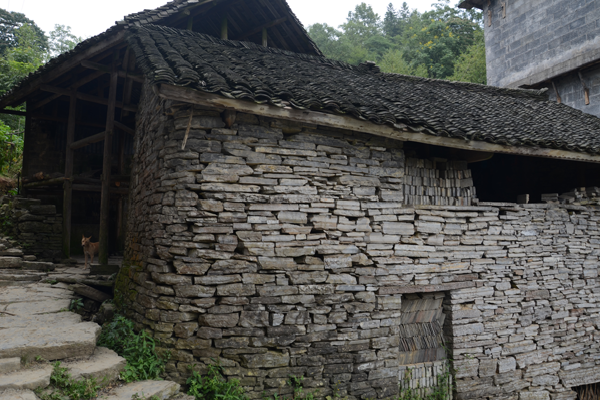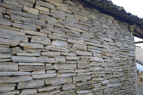 石板房以石條或石塊砌墻,墻可壘至5至6米高;以石板蓋頂,風(fēng)雨不透。總之,除檁條、椽子是木料外,其余全是石料,甚至家用的桌、凳、灶、缽都是石頭鑿的。一切都樸實無華,固若金湯。這種房屋冬暖夏涼,防潮放火,相對采光較差。