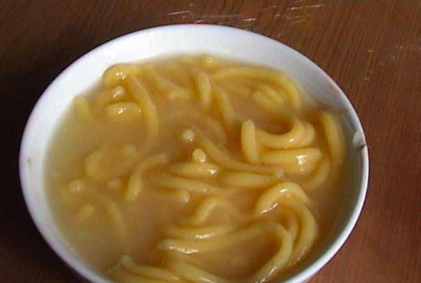 在夏季,滿族同胞喜食“酸湯子”,其制法是:用玉米發(fā)酵面團制成面條或面片,直接甩入湯鍋中制成。操作步驟是將玉米浸泡磨成水面,用布濾去渣滓,細面入缸發(fā)酵至微酸,然后從手指上戴的漏斗形湯套中擠出長條,下沸水鍋中稍煮,再盛入碗內(nèi)。也可將發(fā)酵后的面團加糖攪成糊狀,用勺舀從鍋沿自然流入鍋中間,成牛舌狀,也稱牛舌餑餑。食用時略帶酸味,味美可口。