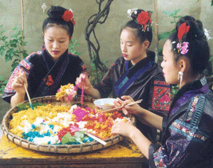 侗族分布于貴州、湖南、廣西三省毗鄰地區(qū)的南方少數(shù)民族,居住在黔、湘、桂等省區(qū)的毗連地區(qū),其中以貴州省人口最多。古代文獻(xiàn)中稱“駱越”、“僚”、“侗蠻”。他們主要從事山壩農(nóng)業(yè),兼營林業(yè)和漁獵,手工業(yè)發(fā)達(dá)。出產(chǎn)“香禾糯”(有“糯中之王”之稱)、“稻花鯉”、油茶。