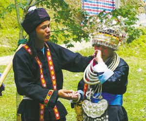 一番對(duì)話之后,小伙子就可以向姑娘討要信物了,而女方中較有威信的一位會(huì)拿出一件隨身的東西相送。小伙子還會(huì)囑咐:“到時(shí)阿姐可要如期到來(lái)!”