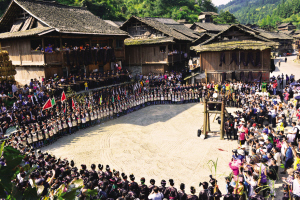 2014年7月18日,貴州省黎平縣雙江鎮(zhèn)黃崗侗寨侗族同胞舉行了一年一度的“喊天節(jié)”?!昂疤旃?jié)”又稱“祭天節(jié)”或“求雨節(jié)”,每年農歷六月十五日舉行。當天,侗族同胞開展了祭薩、 祭天、捕魚比賽、鼓樓對歌等活動。 王炳真攝影報道
