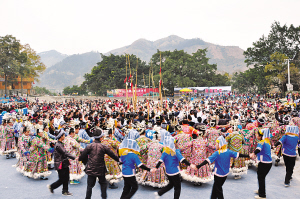 2012年12月18日,貴州省榕江縣2000多名少數(shù)民族同胞盛裝出行,歡慶薩瑪節(jié)?!八_瑪”是侗族母系氏族社會時的女英雄,侗語意為“大祖母”。薩瑪節(jié)被譽(yù)為“侗族的婦女節(jié)”。2006年,侗族薩瑪節(jié)被列入第一批國家級“非遺”名錄。