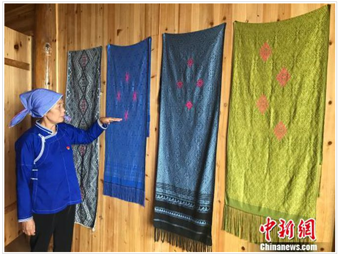粟田梅說,在過去,當(dāng)?shù)厝丝棾龅囊黄テザ卞\多用于日常穿戴,且品種比較單一,并未進(jìn)入市場(chǎng)流通。加之農(nóng)村青壯年不斷外出務(wù)工,侗錦曾一度面臨無人傳承的窘境。