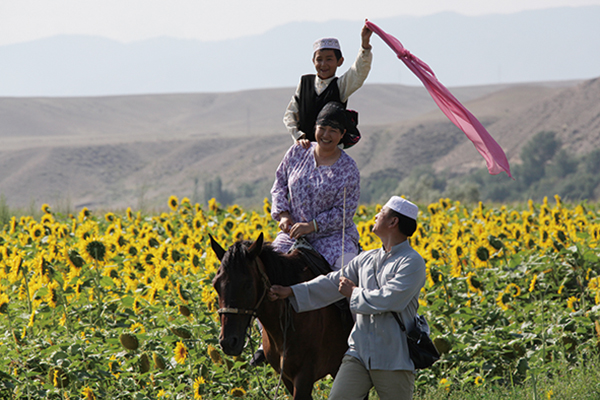 相比于《德吉德》中對蒙古人性情的原生態(tài)展現(xiàn),《伊犁河》似乎在民族特征上不那么突出。依賴故鄉(xiāng)的母親、向往城市的兒子、生活的變遷與成長的感悟,在世俗每個角落里的家庭中都上演著、發(fā)酵著。這種普世的、共性的情感,無關(guān)民族,無關(guān)地域。導(dǎo)演用伊犁的村莊和上海這個現(xiàn)代化都市之間的落差,詮釋著親情與文化。影片的結(jié)局無疑做出了選擇,無論城市的人群多么川流不息,也比不上童年在故鄉(xiāng)與親人的耳鬢廝磨。