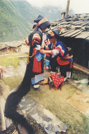 待采足一百種藥草后,又相繼一路歡歌回村,聚集在泉畔或河邊擇洗藥物。邊洗藥物,邊唱山歌“唱數(shù)”各自采到的藥物的名稱(chēng)、藥性、藥效。洗凈藥草,人們選出其間最壯、最好的一百種,配以各色鮮花,編制成藥仙的肖像,待舉辦頌藥仙活動(dòng)時(shí)使用。其它藥草,分揀歸類(lèi)晾干備用,剩下的“腳料”,拿回家中用大鍋煎汁,待頌藥仙活動(dòng)后,兌水浴身,消災(zāi)祛病。
