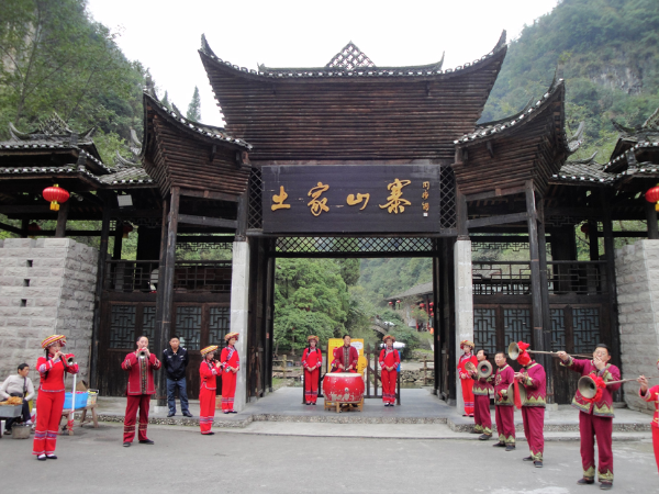 圖為湖北宜昌點(diǎn)軍區(qū)車溪土家山寨迎賓場面 老鐵供圖