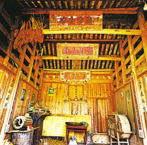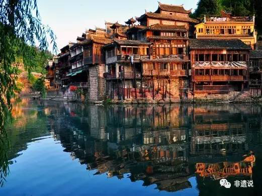 土家族人傳統(tǒng)的棲息場(chǎng)所——吊腳樓,底層吊腳,高層居住,一半與陸地相接,另一半與水面相依。