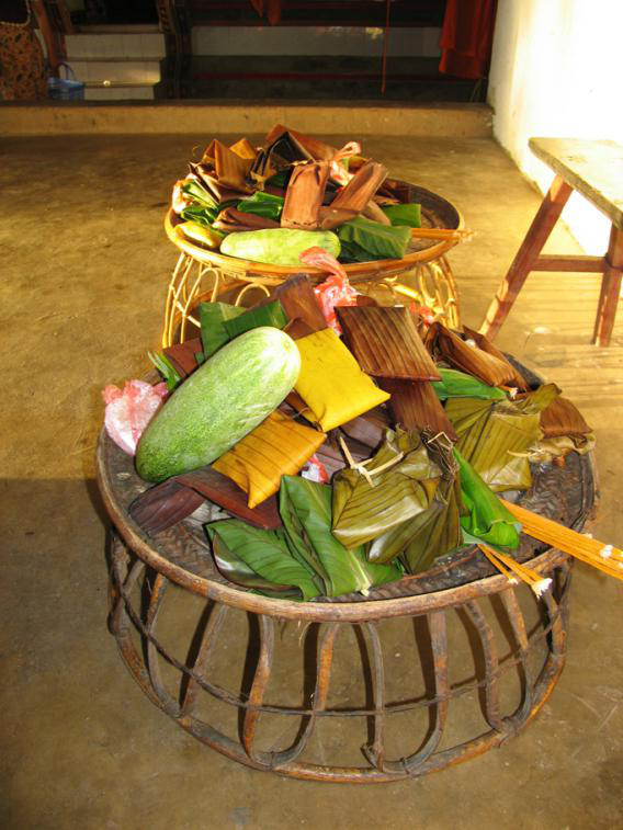所有佐餐菜肴及小吃均以酸味為主,如酸筍、酸豌豆粉、酸肉及野生的酸果;喜歡吃干酸菜,其制法是把青菜曬干,再用水煮,加入木瓜汁,使味變酸,然后曬干儲藏。吃時放少許煮菜或放在湯內(nèi)。這種酸菜,有些地方的傣族幾乎每天都吃。據(jù)說傣族之所以常食酸味菜肴,是因常吃不易消化的糯米食品,而酸味食品有助于消化。苦瓜是產(chǎn)量最高、食用最多的日常蔬菜。除苦瓜外,西雙版納還有一種苦筍,因此傣族風味中還有一種苦的風味,較有代表性的苦味菜肴是用牛膽汁等配料烹制的牛撒皮涼菜拼盤。