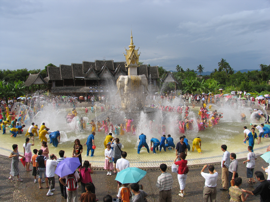 傣族新年。時在傣歷六月二十四到二十六日(夏歷四月中旬),節(jié)期三、五天。節(jié)日清晨,男女老幼沐浴更衣,到佛寺賧佛,即給佛像灑清水洗塵,然后互相潑水,除疾消災。后演為以潑水為戲的節(jié)日。相傳,古有火魔無惡不作,搶走7個姑娘。最年輕的姑娘儂香,得知了殺死火魔的秘密:拔下它的頭發(fā)把它勒死。魔頭成一團火球,落在哪里,哪里就起火。姑娘們即挑水相潑,滅了邪火。此傳說相沿成習,漸成潑水節(jié)。一說此俗源于印度,婆羅門教徒每年此時到河中沐浴,洗去罪惡;年邁者不能下河,子女便為其潑水洗罪。后傳入中國傣族地區(qū)。